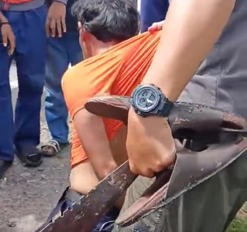 Dengan sigap, ia berhasil merebut parang dari tangan pelaku dan menjatuhkannya ke tanah dalam posisi tengkurap. Ia kemudian meminta bantuan warga sekitar untuk mengikat pelaku agar tak kembali mengamuk.