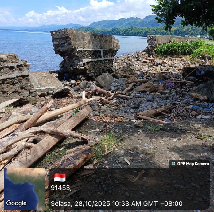Mamuju ambarnews.com – Badan Penanggulangan Bencana Daerah (BPBD) Provinsi Sulawesi Barat (Sulbar) menerima laporan dari BPBD Kabupaten Majene terkait jebolnya tanggul penahan ombak sepanjang kurang lebih 1 kilometer di Desa Salutambung, Kecamatan Ulumanda, Kabupaten Majene pada Senin, 27 Oktober 2025.