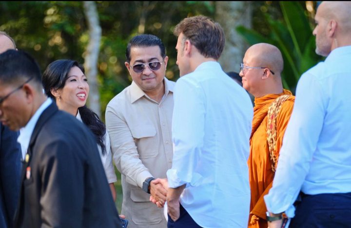 Presiden Macron yang didampingi oleh Presiden Prabowo tiba di komplek Borobudur pukul 14:00 WIB dan langsung disambut oleh Menteri Ekonomi Kreatif, Teuku Riefky Harsya, sebelum akhirnya berkeliling melihat situs Warisan Dunia ini.