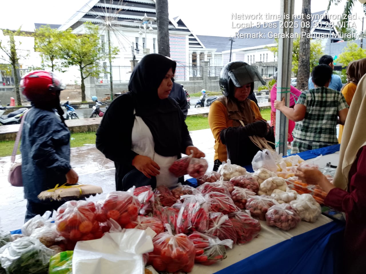 Pasar murah ini melibatkan UMKM Pangan Lokal, Bulog Mamuju, Dinas Tanaman Pangan, Peternakan dan Hortikultura Sulbar, dalam rangka stabilisasi harga pangan menjelang HBKN Natal 2025 dan tahun Baru 2026.