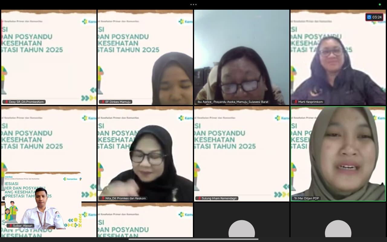 Kedua perwakilan tersebut melaksanakan pemaparan secara daring, didampingi oleh tim pendamping dari Dinas Kesehatan Kabupaten masing-masing serta Tim Kerja Promosi Kesehatan dan Kesehatan Komunitas Dinas Kesehatan Provinsi Sulawesi Barat.