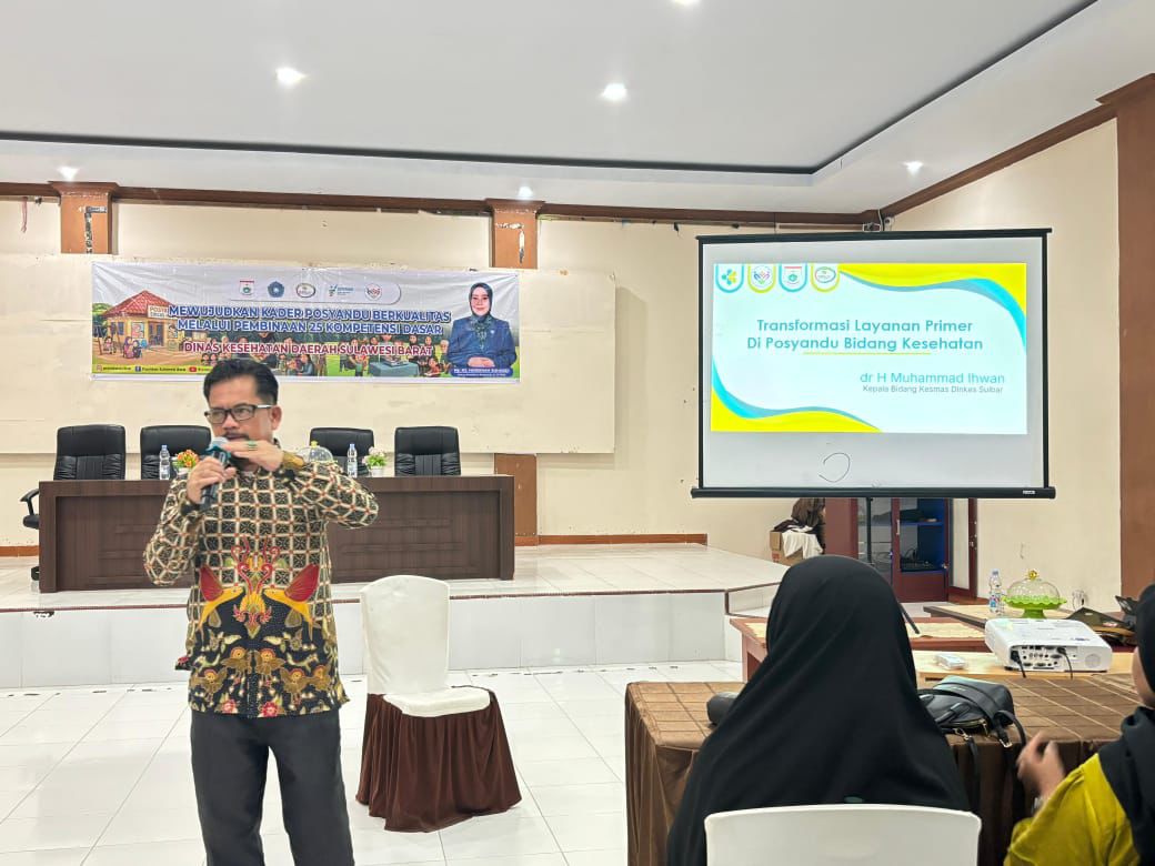 Meskipun tidak dapat hadir secara langsung, Plt. Kepala Dinas Kesehatan Provinsi Sulawesi Barat, dr. Nursyamsi Rahim, menyampaikan apresiasi dan dukungan penuh terhadap pelaksanaan kegiatan ini. Dalam pernyataannya, ia menekankan pentingnya penguatan kapasitas kader sebagai bagian dari strategi pembangunan kesehatan masyarakat Sulawesi Barat yang berkelanjutan.