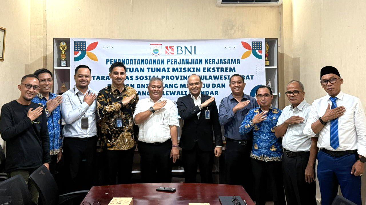 Mamuju ambarnews.com— Dinas Sosial Provinsi Sulawesi Barat menjalin kerja sama dengan Bank Negara Indonesia (BNI) Cabang Mamuju dan BNI Cabang Polewali Mandar melalui penandatanganan perjanjian kerja sama (PKS) tentang penyaluran bantuan tunai bagi masyarakat miskin ekstrem, Senin (10/11/2025).