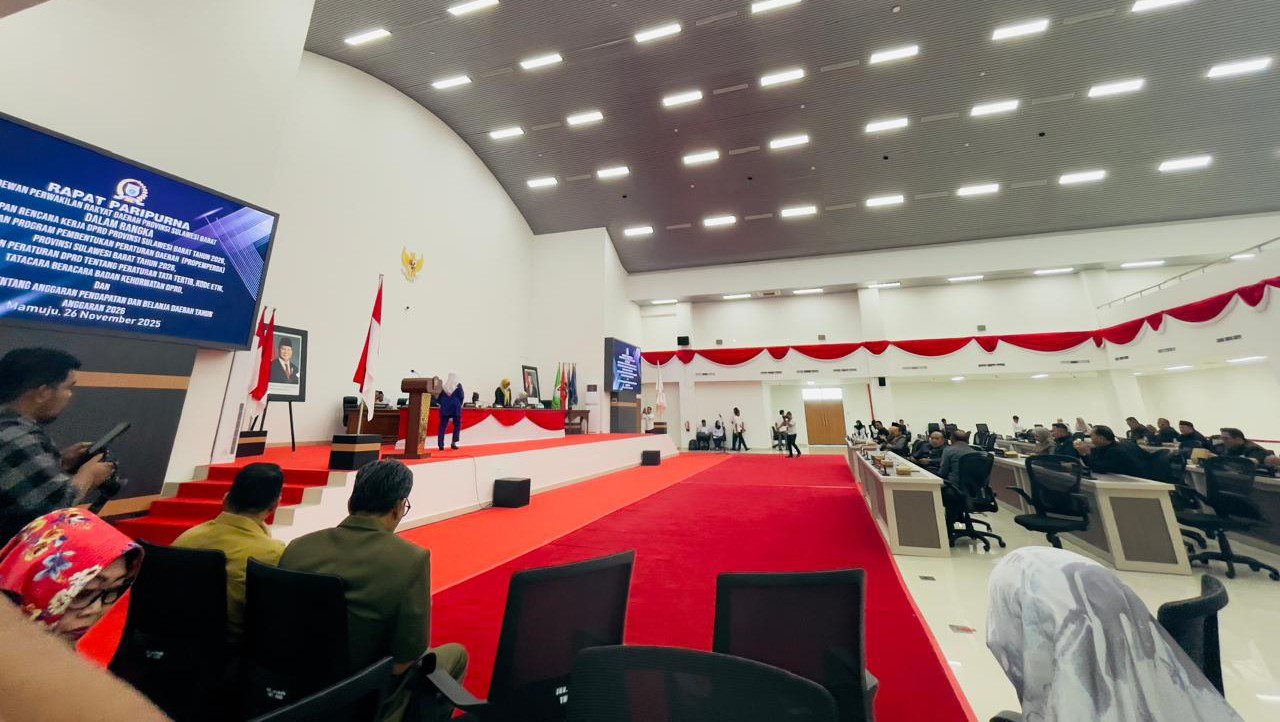 Rapat paripurna dipimpin langsung oleh unsur pimpinan DPRD Provinsi Sulawesi Barat, serta dihadiri oleh Gubernur Sulbar, Suhardi Duka dan Wakil Gubernur Salim S Mengga, anggota DPRD, perwakilan Organisasi Perangkat Daerah (OPD), dan unsur Forum Koordinasi Pimpinan Daerah (Forkopimda). Pembahasan difokuskan pada penyempurnaan dokumen APBD 2026 agar benar-benar responsif terhadap kebutuhan masyarakat.