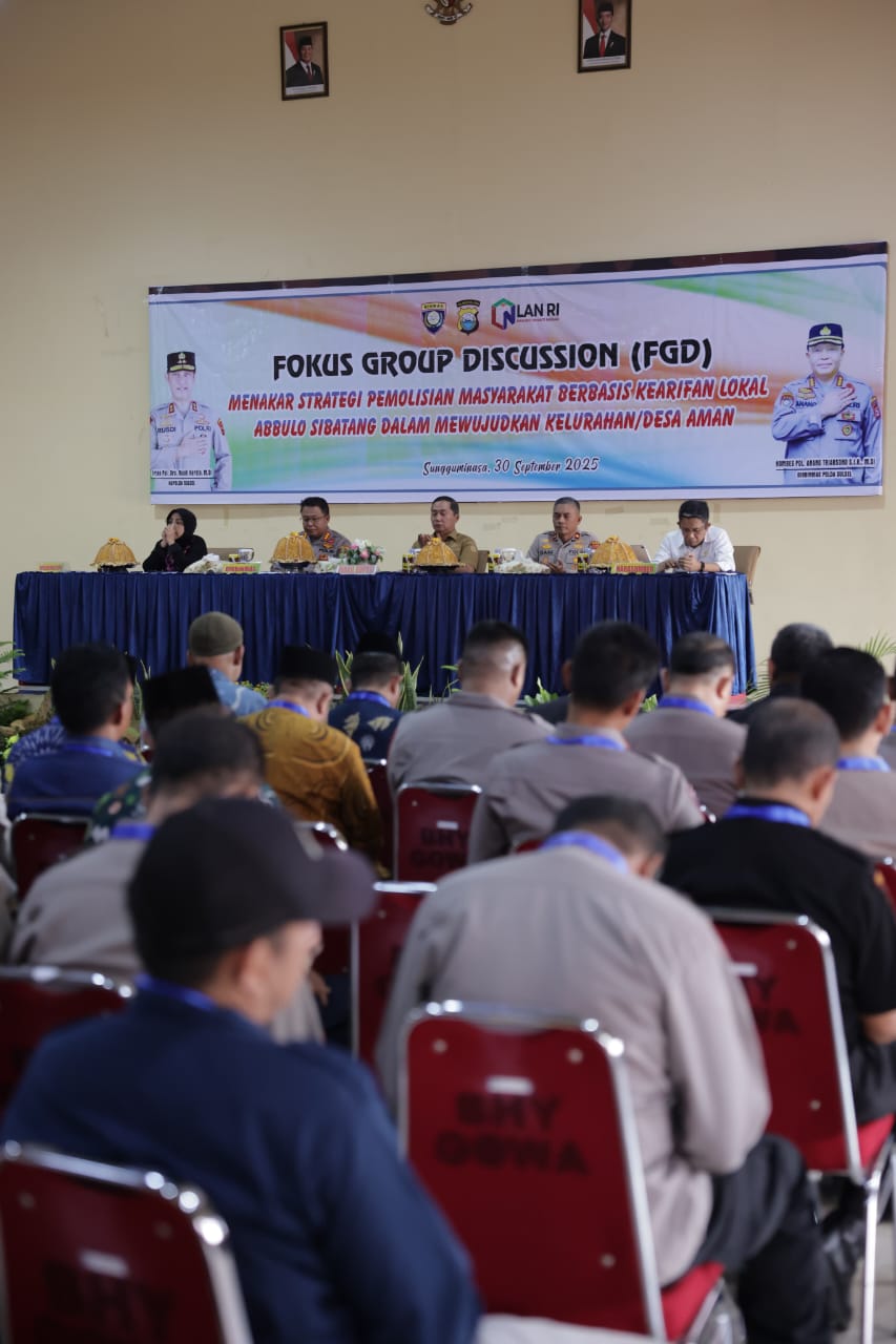 GOWA-AMBARNEWS.COM || Dirbinmas Polda Sulsel Kombespol Anang Triarsono, S.IK.,M.Si didampingi Wakapolres Gowa Kompol Gani, S.H., M.H, KakesbangPol Gowa, Prof Dr. Ir. H. Zakir Sabhara, HW, S.T., M.T, IPM, Asean Eng. serta Dr. Sakka Pati., S.H., M.H membuka dan menghadiri acara FGD yang dilaksanakan di aula Polres Gowa, (30/09/2025).
