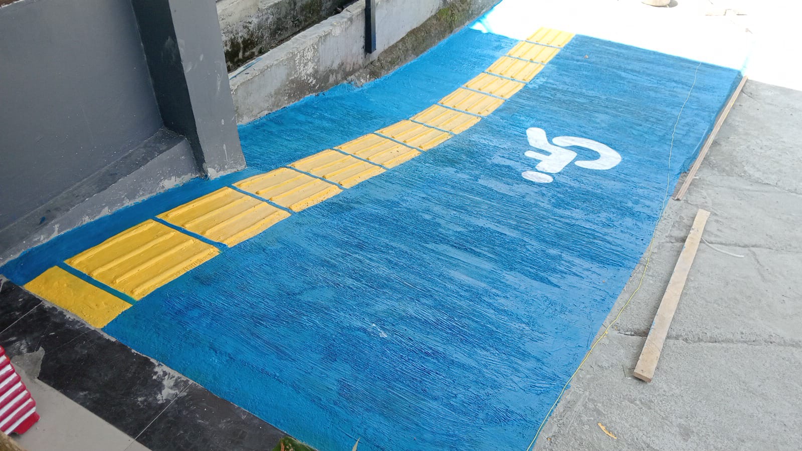 Untuk itu, Diskominfo Sulbar mendesain pintu masuk kantor Diskominfo Sulbar memberikan jalur khusus bagi difabel dengan standar layanan inklusif.