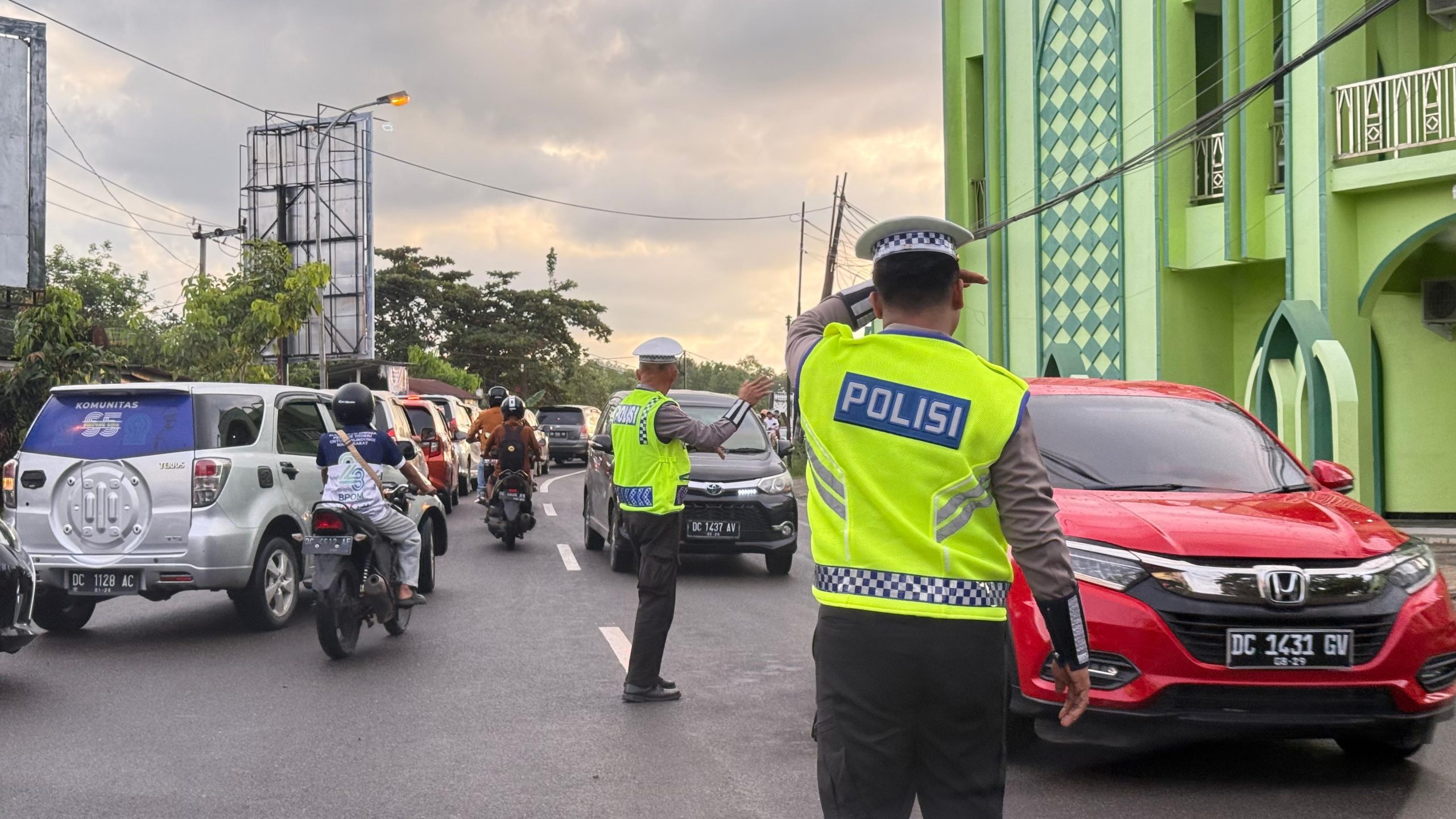 Salah satunya di persimpangan Masjid Karema, personel Ditlantas terlihat sibuk mengatur arus lalu lintas yang cukup padat, Sabtu (31/1/26).