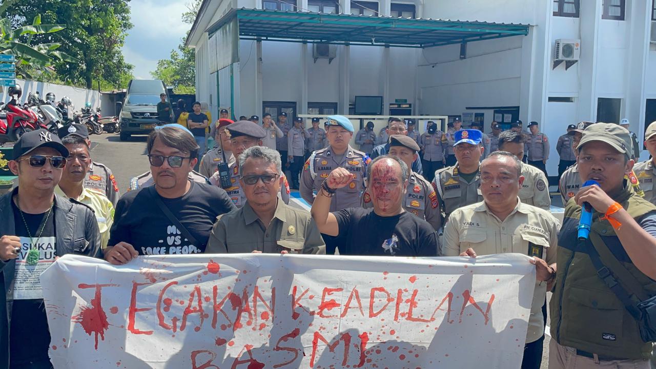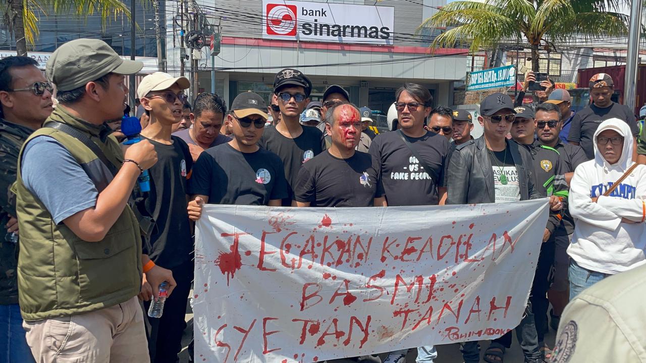 Aksi tersebut diwarnai dengan aksi teatrikal yang ekstrem di mana Rohimat Joker, Ketua Umum LSM PMPR Indonesia sekaligus koordinator aksi, memecahkan gelas ke kepalanya hingga bersimbah darah, lalu darah yang bercucuran tersebut ia gunakan untuk menuliskan kalimat “TEGAKKAN SUPREMASI HUKUM, BASMI SETAN TANAH” di atas selembar kain kafan sebagai simbol perlawanan terhadap mafia tanah di Kabupaten Cianjur.