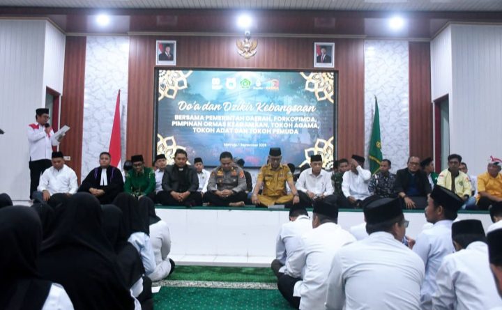 Mamuju ambarnews.com– Kementerian Agama Sulbar bersama Pemprov, tokoh agama, tokoh masyarakat hingga tokoh pemuda melaksanakan doa dan dzikir kebangsaan di Aula Kantor Kemenag Sulbar, Senin 1 September 2025.