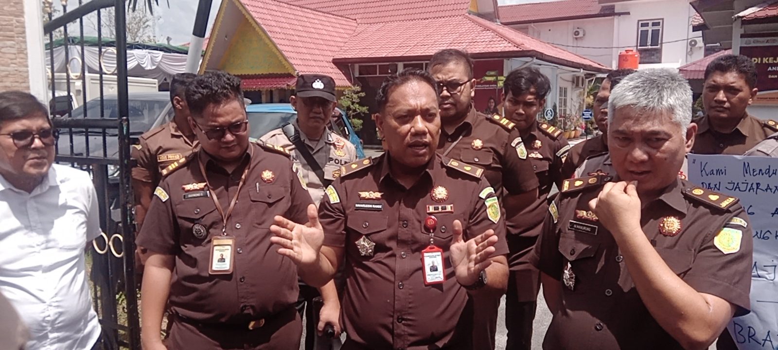 Kasi Intel Kejari Asahan Herianto Manurung,SH dan Kasi Pidum Naharuddin Rambe,SH,MH menyambut para pengunjukrasa