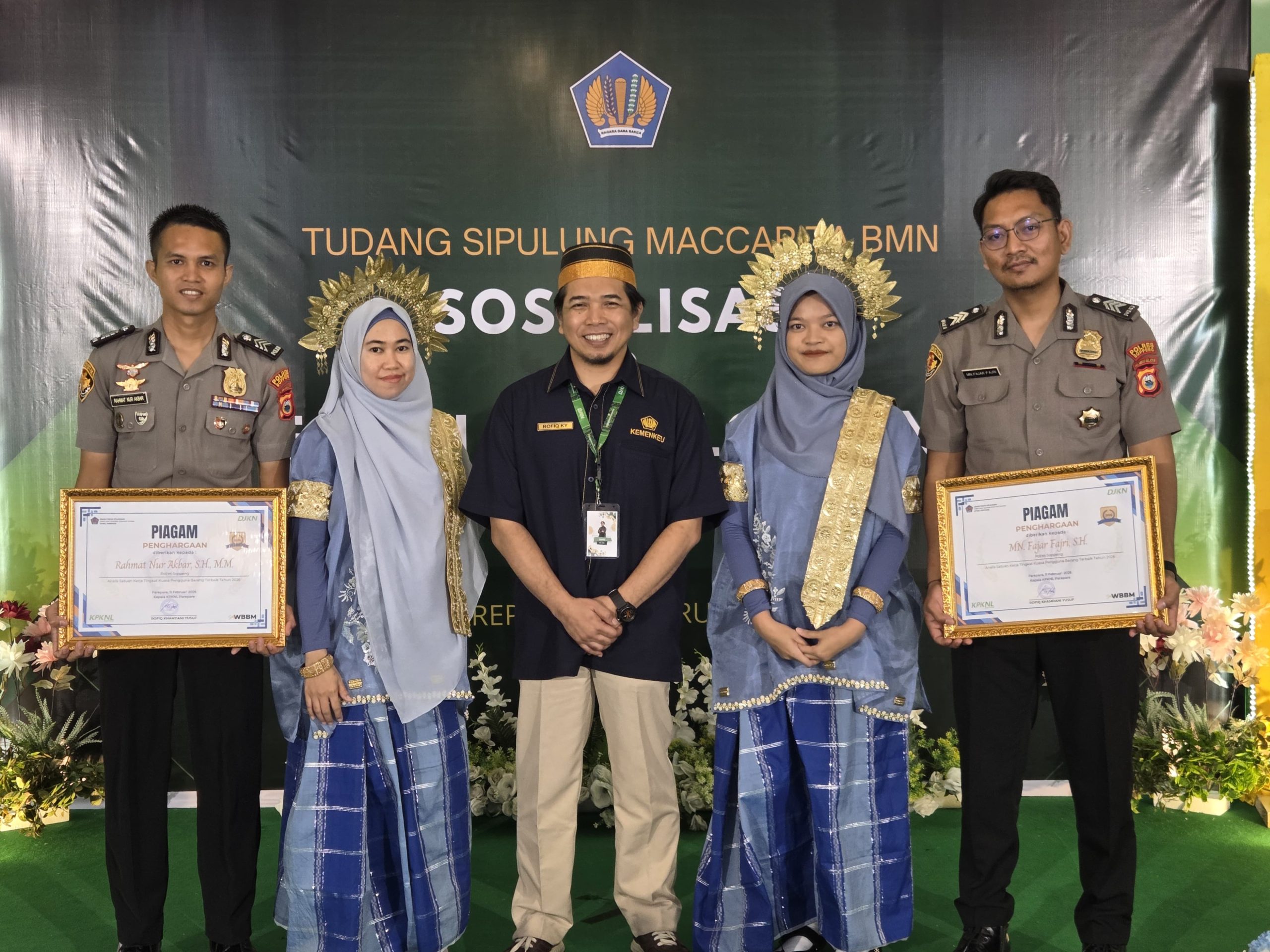 AMBARNEWS.COM || Dua personel Polres Soppeng Polda Sulsel berhasil meraih penghargaan sebagai Analis Satuan Kerja Kuasa Pengguna Barang (Satker KPB) Terbaik Tahun 2026 dalam kegiatan Tudang Sipulung Sosialisasi dan Apresiasi Pengelolaan Barang Milik Negara (BMN) yang diselenggarakan oleh KPKNL Parepare.