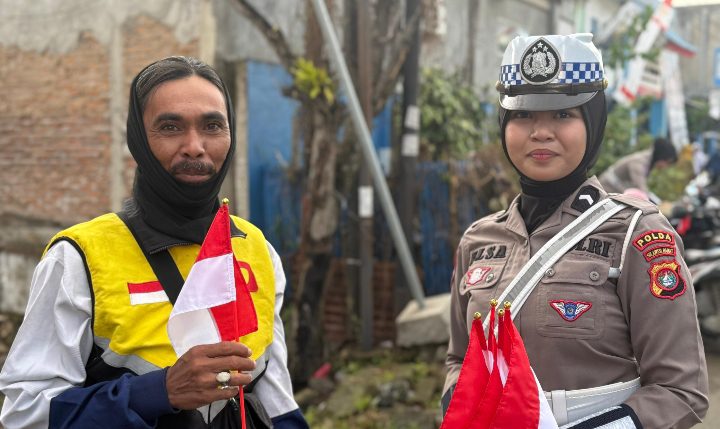 Petugas Ditlantas Polda Sulbar terlihat aktif membagikan bendera merah putih mini kepada para pengendara yang melintas. Aksi ini bukan sekadar pembagian bendera biasa, melainkan upaya kreatif untuk mengobarkan semangat kemerdekaan di tengah masyarakat.