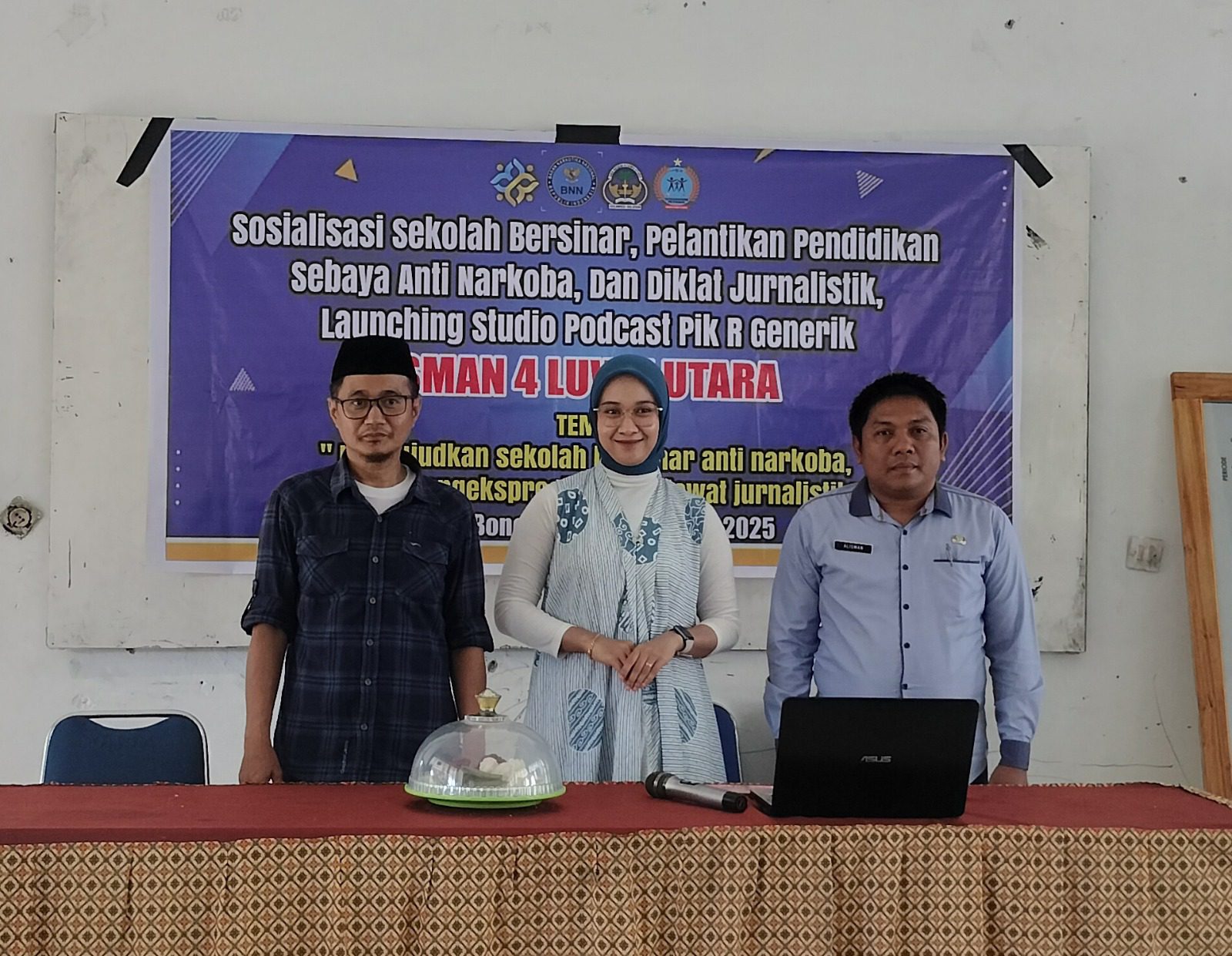 Menariknya, pihak panitia menghadirkan tiga narasumber (narsum) yang kompeten di bidangnya, masing-masing Alisman (Diskominfo Lutra), dan Enhana Tarbiatunnisa (Diskominfo Lutim).