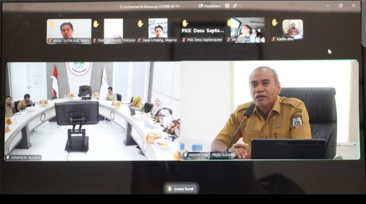 Inspektur Daerah Provinsi Sulbar, M. Natsir, didampingi Irban Wilayah II, Suhendra, serta Ketua DWP unit Inspektorat Daerah, Ny. Asiarni Natsir, mengikuti kegiatan tersebut secara daring melalui Zoom Meeting di Kantor Inspektorat Daerah, Selasa 9 September 2025.