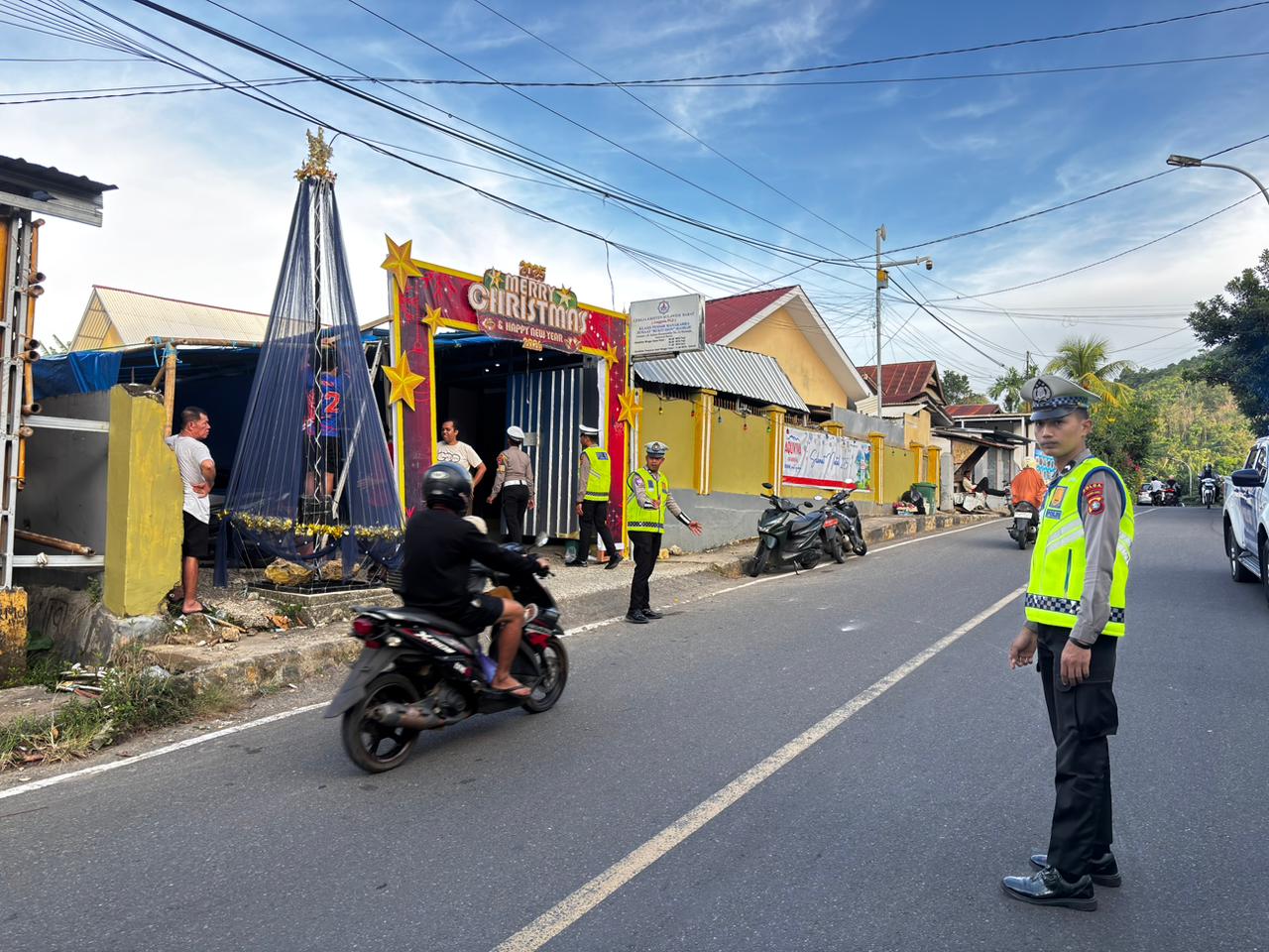 Nampak personel Ditlantas dalam Tim Urai Macet mengunjungi gereja-gereja yang akan menggelar rangkaian ibadah dan perayaan Natal. Patroli ini bertujuan memastikan situasi kamtibmas tetap kondusif sekaligus mengantisipasi potensi kemacetan lalu lintas di sekitar lokasi ibadah.