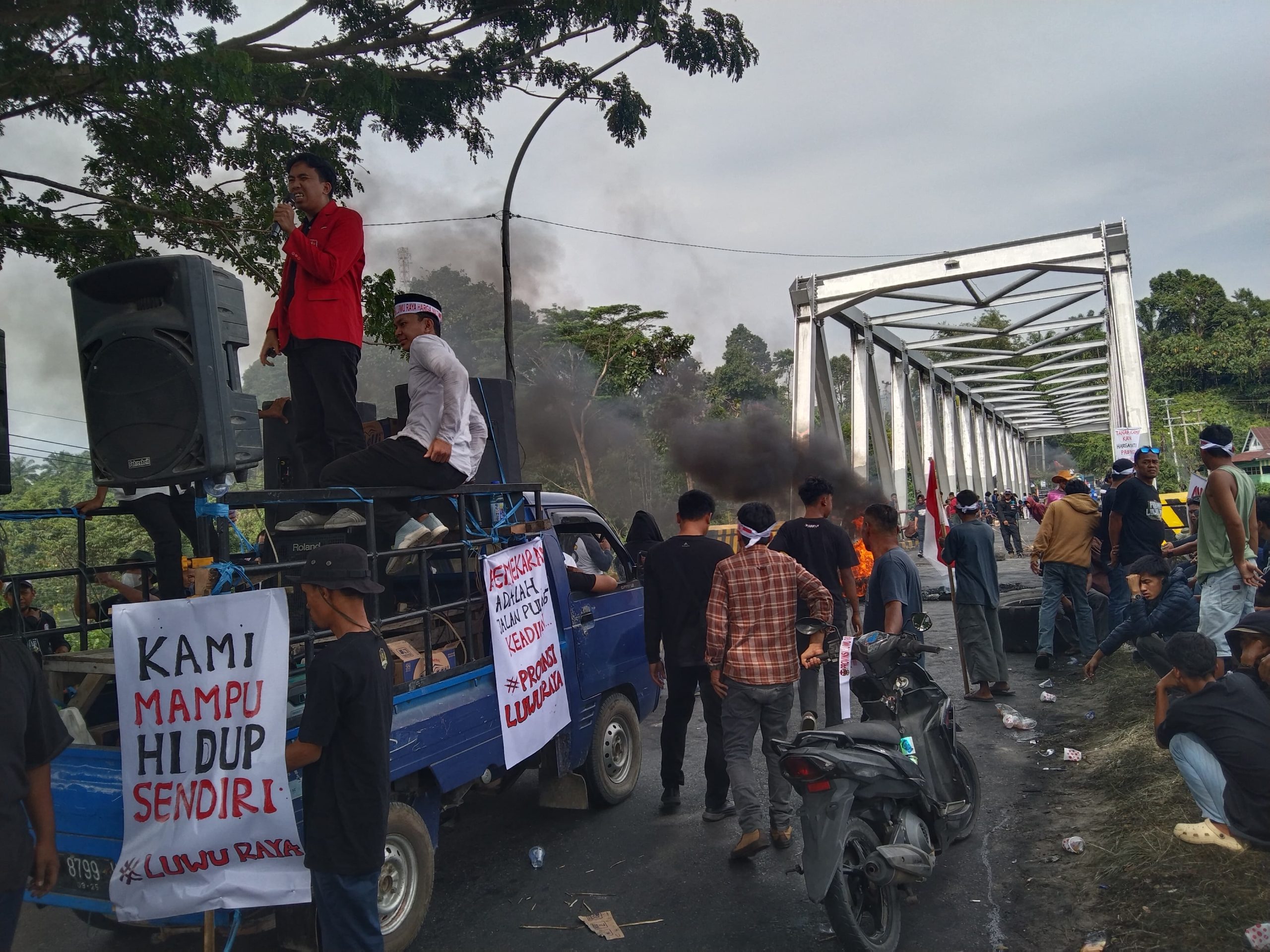 Hari Ketiga Aksi Demo di Jembatan Baliase, Luwu Utara Lumpuh Total Bertepatan HUT Daerah dan Hari Perlawanan Rakyat Luwu