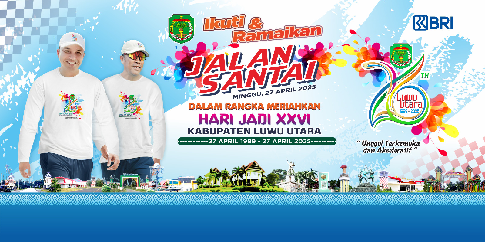 Luwu Utara,ambarnews.com –— Dalam rangka memeriahkan Hari Ulang Tahun (HUT) XXVI Kabupaten Luwu Utara, pemerintah daerah (pemda) melalui panitia pelaksana, akan melaksanakan kegiatan Jalan Santai, Ahad (27/4/2025), yang melibatkan seluruh elemen masyarakat Luwu Utara.