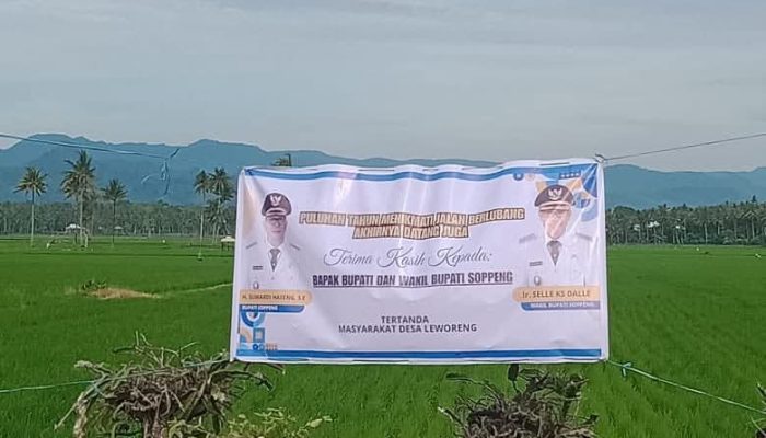 Pembangunan tersebut disambut penuh rasa syukur oleh masyarakat. Sebagai bentuk apresiasi, warga Desa Leworeng memasang spanduk ucapan terima kasih kepada Bupati Soppeng, Suwardi Haseng dan Wakil Bupati Soppeng, Selle KS Dalle, di pinggir jalan yang baru selesai dibangun. Spanduk itu berdiri di tengah hamparan persawahan, menjadi simbol kebahagiaan warga atas hadirnya akses jalan yang kini jauh lebih baik.