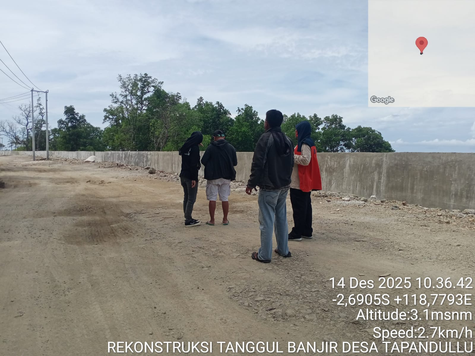 Tim Teknis BPBD Sulbar melakukan pengecekan menyeluruh terhadap hasil pekerjaan rehabilitasi dan rekonstruksi guna memastikan kualitas bangunan tanggul dalam mendukung pengurangan risiko bencana, khususnya potensi banjir dan abrasi di wilayah tersebut. Dokumentasi visual udara ini juga menjadi bagian dari laporan pertanggungjawaban kegiatan hibah rehabilitasi dan rekonstruksi.