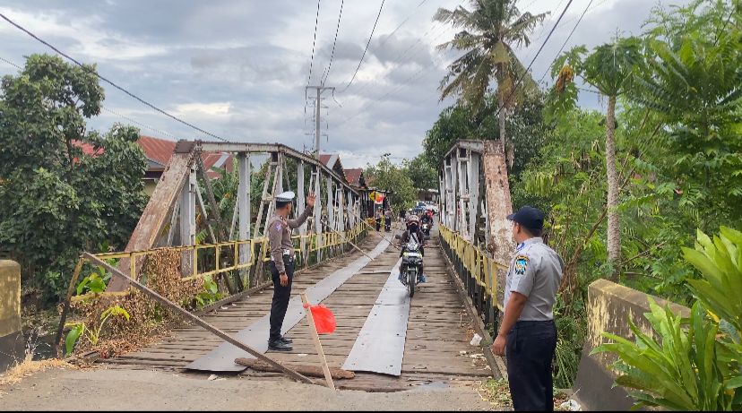 “Saya menghimbau kepada pengguna kendaraan roda empat atau bermuatan berat untuk tidak melewati jembatan ini demi keselamatan bersama,” ujar AKP H. Alwi.