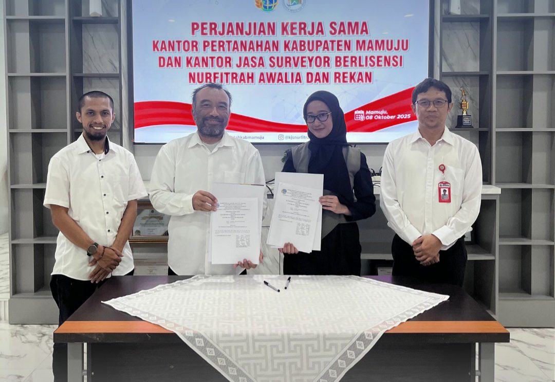 Kantor Pertanahan Kabupaten Mamuju menandatangani Perjanjian Kerja Sama dengan Kantor Jasa Surveyor Berlisensi Nurfitrah Awaliah dan Rekan.
