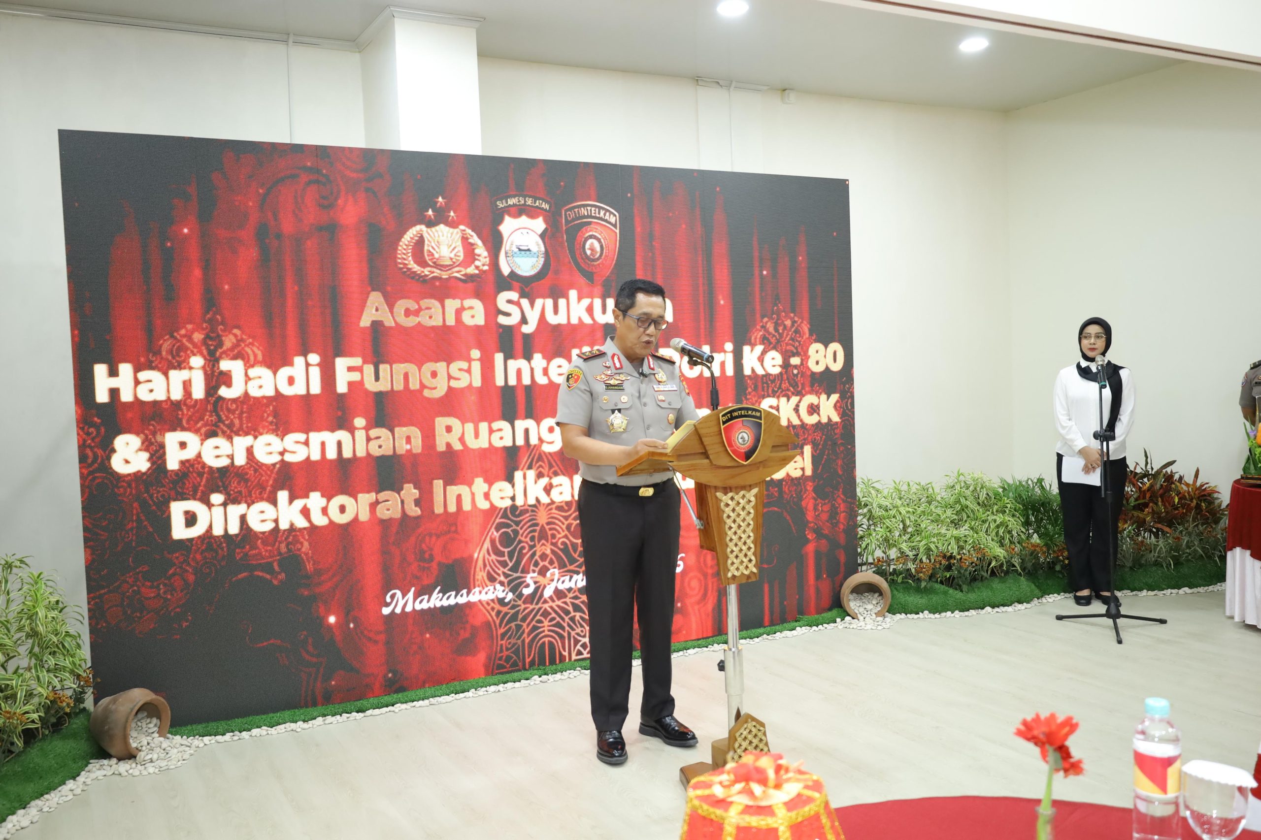 AMBARNEWS.COM || Kapolda Sulawesi Selatan Irjen Pol. Djuhandhani Rahardjo Puro, S.H., M.H., menghadiri kegiatan syukuran Hari Jadi ke-80 Fungsi Intelijen Polri yang dirangkaikan dengan peresmian Ruang Pelayanan SKCK Direktorat Intelkam Polda Sulsel, Senin (05/01/2026).