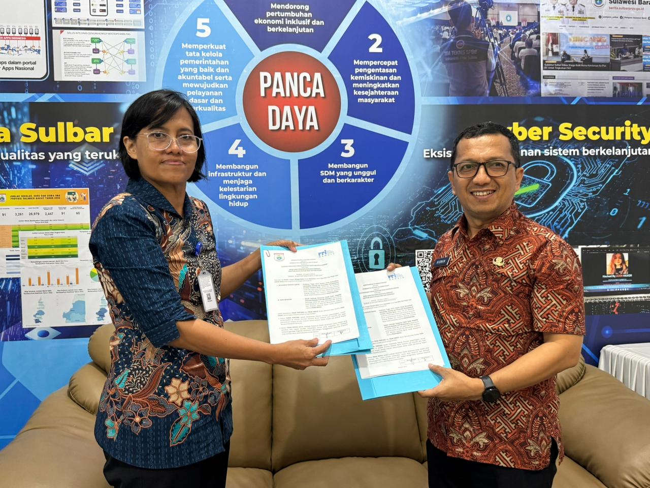 Diskominfo Sulbar dengan RRI Mamuju melakukan penandatangan penandatanganan Memorandum of Understanding dengan Kepala Stasiun LPP RRI Mamuju di ruang kerja Kepala Diskominfo Sulbar, Kamis, 18 September 2025