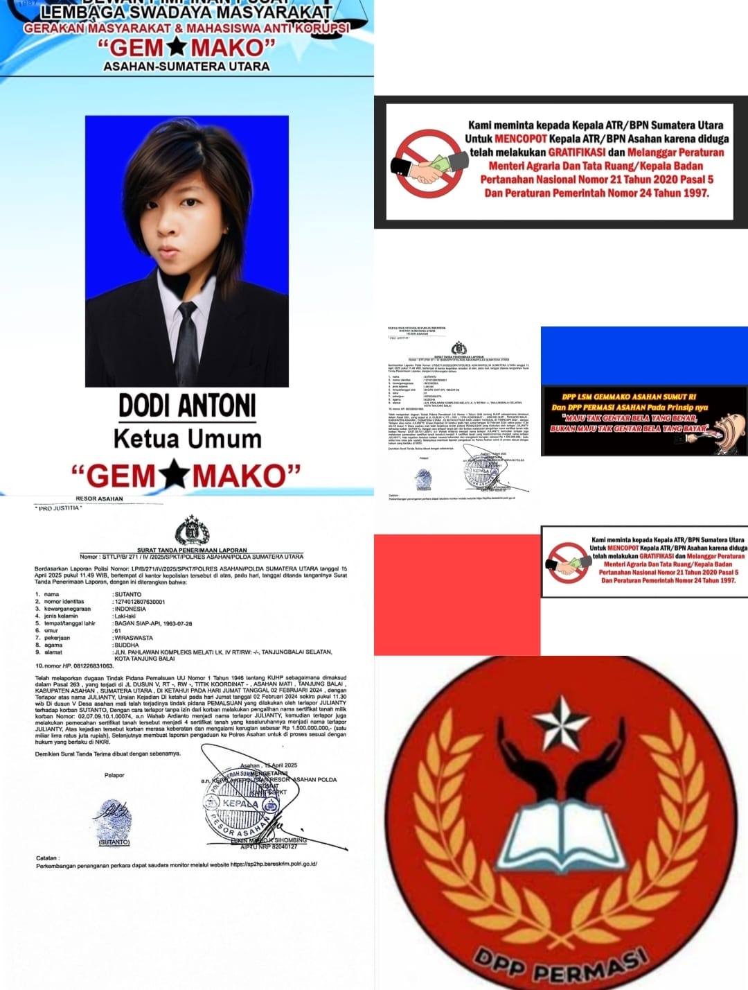 Lanjutnya, Kami dari Pengurus DPP LSM GEMMAKO dan PERMASI Asahan akan terus mengawasi dan monitoring sampai selesai atas kasus yang dialami Bapak Sutanto Alias Ahai, jika hal ini tidak di indahkan. Maka kami akan melakukan aksi unjuk rasa besar-besaran di kantor BPN Provinsi Sumatera Utara dan Kantor Kapolda Sumut”, pungkasnya. (Amin/Tim)