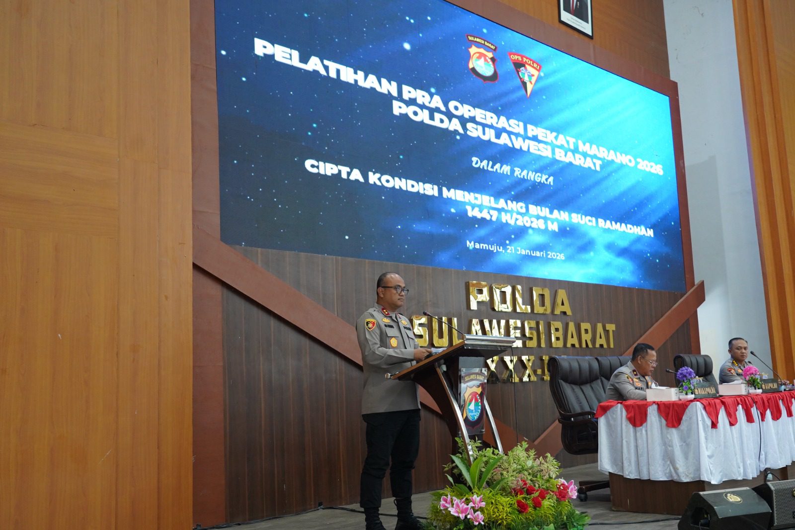 Polda Sulbar ambarnews.com–Guna memastikan pelaksanaan optimal Operasi Pekat Marano-2026, Polda Sulbar menggelar Pelatihan Pra Operasi (Latpra) yang melibatkan seluruh jajarannya, Rabu (21/1/26) di Aula Marannu Mapolda.