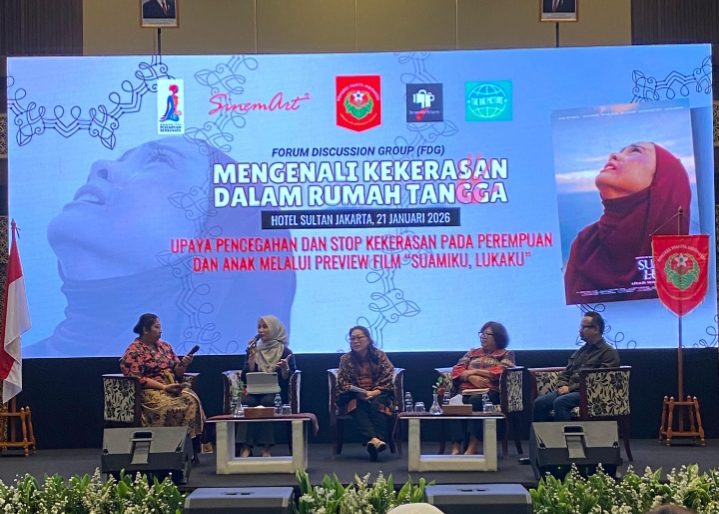Jakarta ambarnews .com–Kongres Wanita Indonesia (Kowani) berkolaborasi dengan SinemArt, The Big Pictures, Tarantella Pictures dan Komunitas Perempuan Berkebaya menyelenggarakan preview film Suamiku, Lukaku dan diskusi bertema “Mengenal Kekerasan Dalam Rumah Tangga – Upaya Pencegahan dan Stop Kekerasan Pada Perempuan Dan Anak Melalui Preview Film Suamiku, Lukaku” di Hotel Sultan, Jakarta pada Rabu, 21 Januari 2026.
