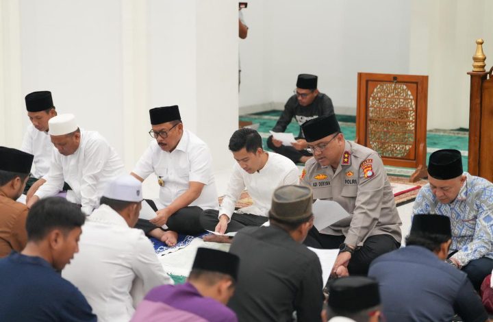 Forkopimda Sulbar bersama masyarakat berkumpul di Masjid Suada Mamuju, Minggu, 31 Agustus 2025 malam. Mereka melantunkan doa istighatsah, memohon agar kondisi bangsa kembali damai.