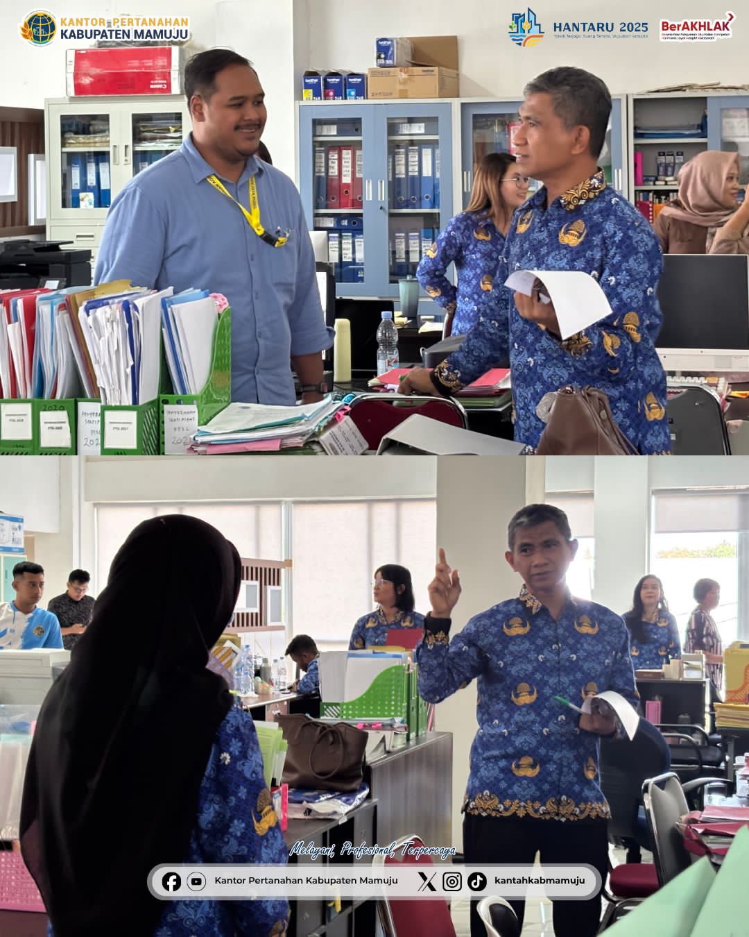 Kepala Kanwil BPN Provinsi Sulawesi Barat bersama Kepala Bidang Penetapan Hak dan Pendaftaran melakukan monitoring dan evaluasi penyelesaian berkas di Kantor Pertanahan Kabupaten Mamuju.