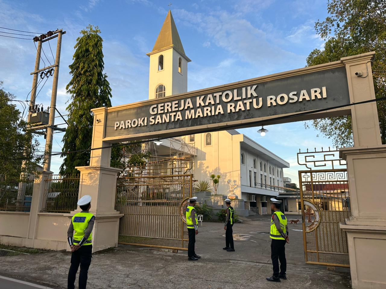Selain mengatur lalu lintas, petugas juga menyampaikan imbauan kamtibmas secara humanis kepada jemaat dan pengurus gereja.
