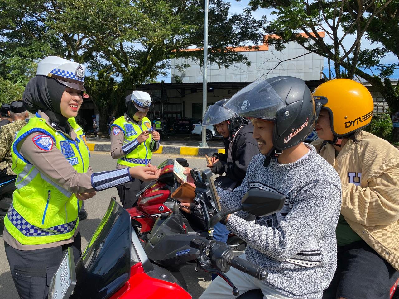 Tak hanya fokus melakukan pengaturan lalu lintas, edukasi serta pemeriksaan kelengkapan dokumen dan kondisi kendaraan pengendara, petugas juga memberikan layanan kesehatan dasar kepada pengendara yang terlihat kurang sehat atau mengalami keluhan ringan.