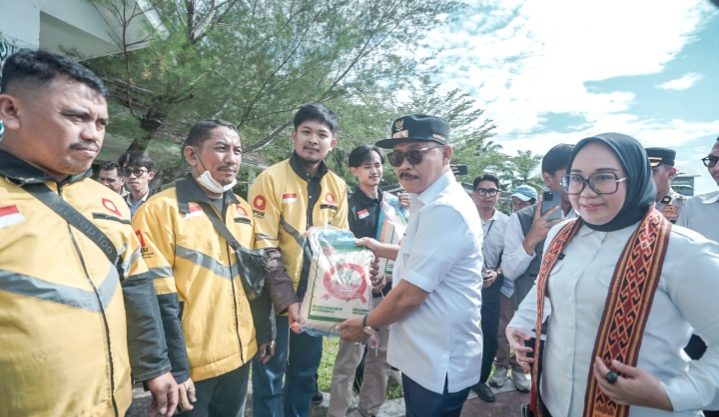 Mamuju ambarnews.com– Gubernur Sulbar Suhardi Duka (SDK) bersama Bupati Mamuju Sitti Sutinah Suhardi turun langsung membagikan beras untuk ratusan pengemudi ojek online (Ojol) di Lapangan Ahmad Kirang, Mamuju, Rabu 3 September 2025.