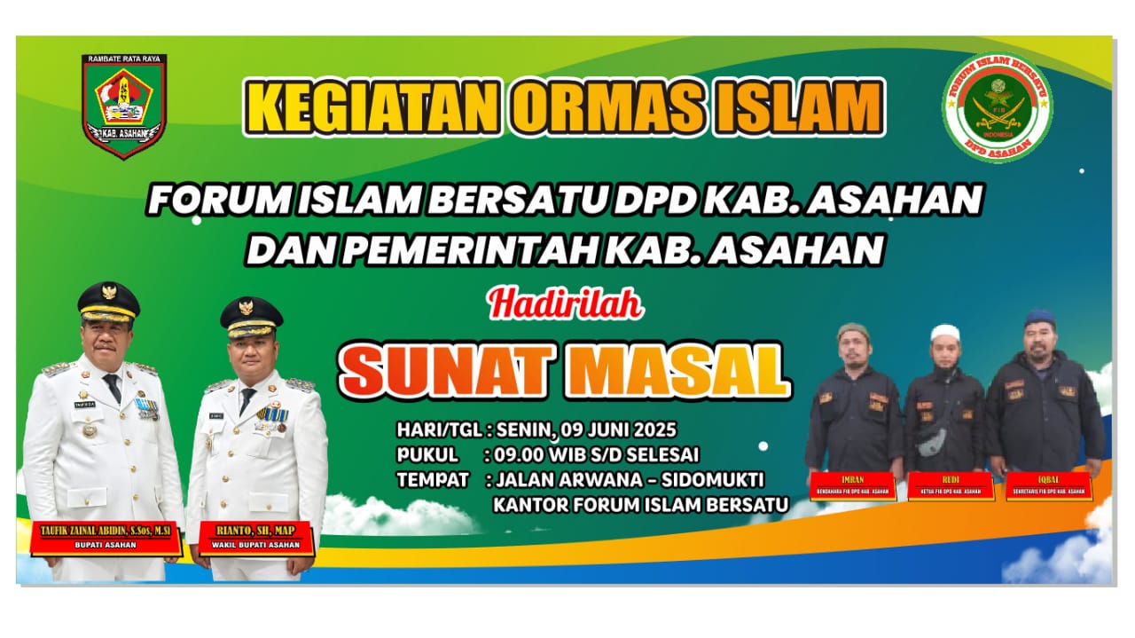 Dan DPD Forum Islam Bersatu (FIB) Kabupaten Asahan juga sudah menyiapkan bantuan kepada anak-anak yang akan di sunat berupa Al-Qur’an,Kain Sarung dan Uang.