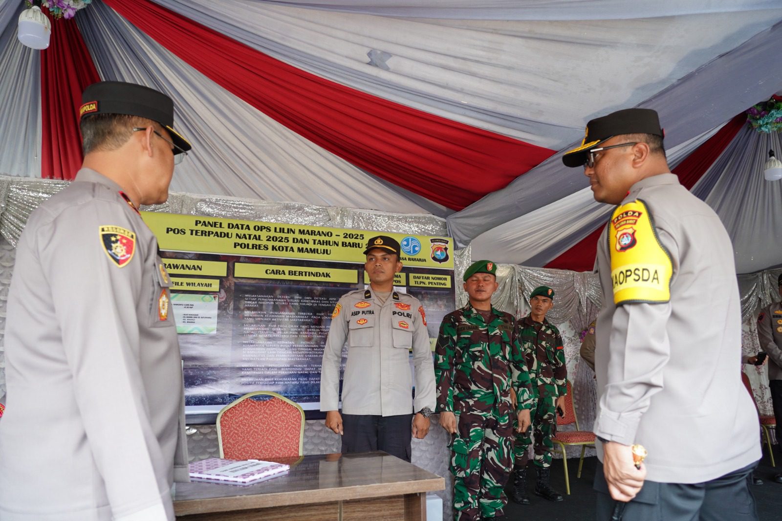 Polda Sulbar ambarnews.com– Dalam rangka memastikan pelayanan kepada masyarakat tetap efektif dan efisien selama masa Nataru (musim liburan Natal dan akhir tahun), Kapolda Sulbar Irjen Pol Adi Deriyan Jayamarta melakukan pengecekan langsung ke beberapa pos pelayanan dan pengamanan di Mamuju, Rabu (24/12/25).