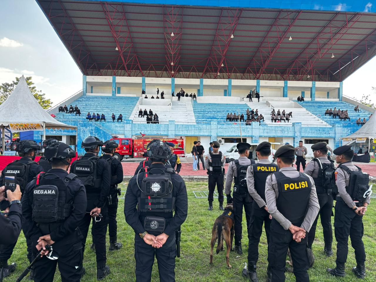 Polda Sulbar ambarnews .com–Sebagai langkah antisipasi untuk memastikan puncak konser musik grup ternama Indonesia, Last Child, yang akan digelar malam ini (Sabtu, 17 Januari 2026) berjalan dengan aman dan lancar dari segala bentuk ancaman serta gangguan, Unit Polisi Satwa (Polsatwa) Direktorat Samapta Polda Sulawesi Barat bekerja sama dengan Tim Jibom Brimob Polda Sulbar melaksanakan kegiatan sterilisasi menyeluruh, Sabtu (17/1/26) sore.