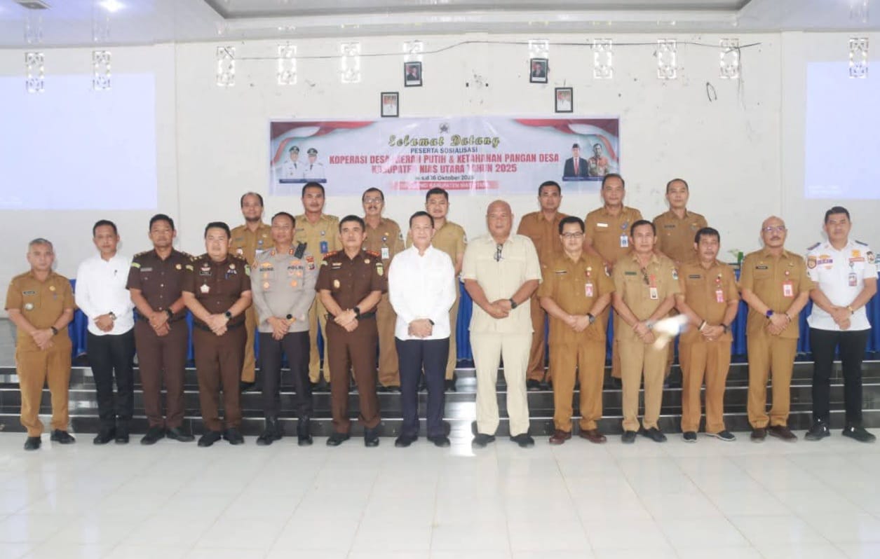 Nias Utara – Ambarnews.com||Pemerintah Kabupaten Nias Utara menggelar sosialisasi Koperasi Desa Merah Putih dan Ketahanan Pangan di Aula Tafaeri, Kabupaten Nias Utara, pada 14-16 Oktober 2025. Kegiatan ini bertujuan untuk meningkatkan pemahaman dan kemampuan pemerintah desa dalam mengelola Koperasi Desa Merah Putih dan Ketahanan Pangan Desa.