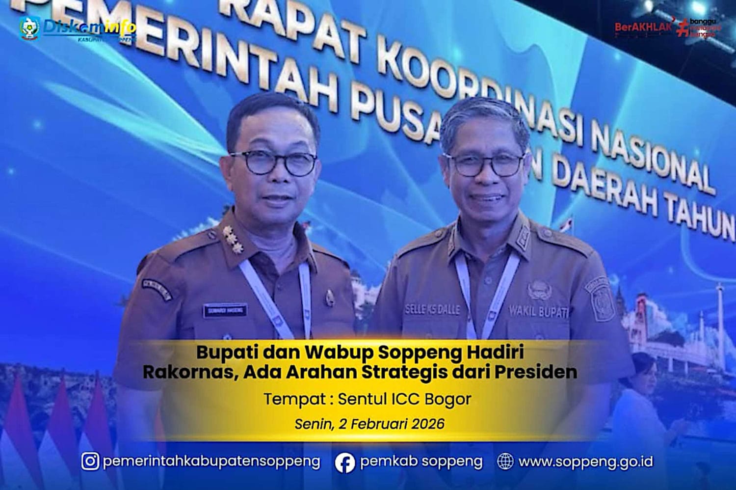 BOGOR-AMBARNEWS.COM || Pemerintah Kabupaten Soppeng bersama jajaran Forum Koordinasi Pimpinan Daerah (Forkopimda) menghadiri Rapat Koordinasi Nasional (Rakornas) Pemerintah Pusat dan Daerah Tahun 2026 yang digelar di Sentul International Convention Center (SICC), Bogor, Senin (2/2/2026).