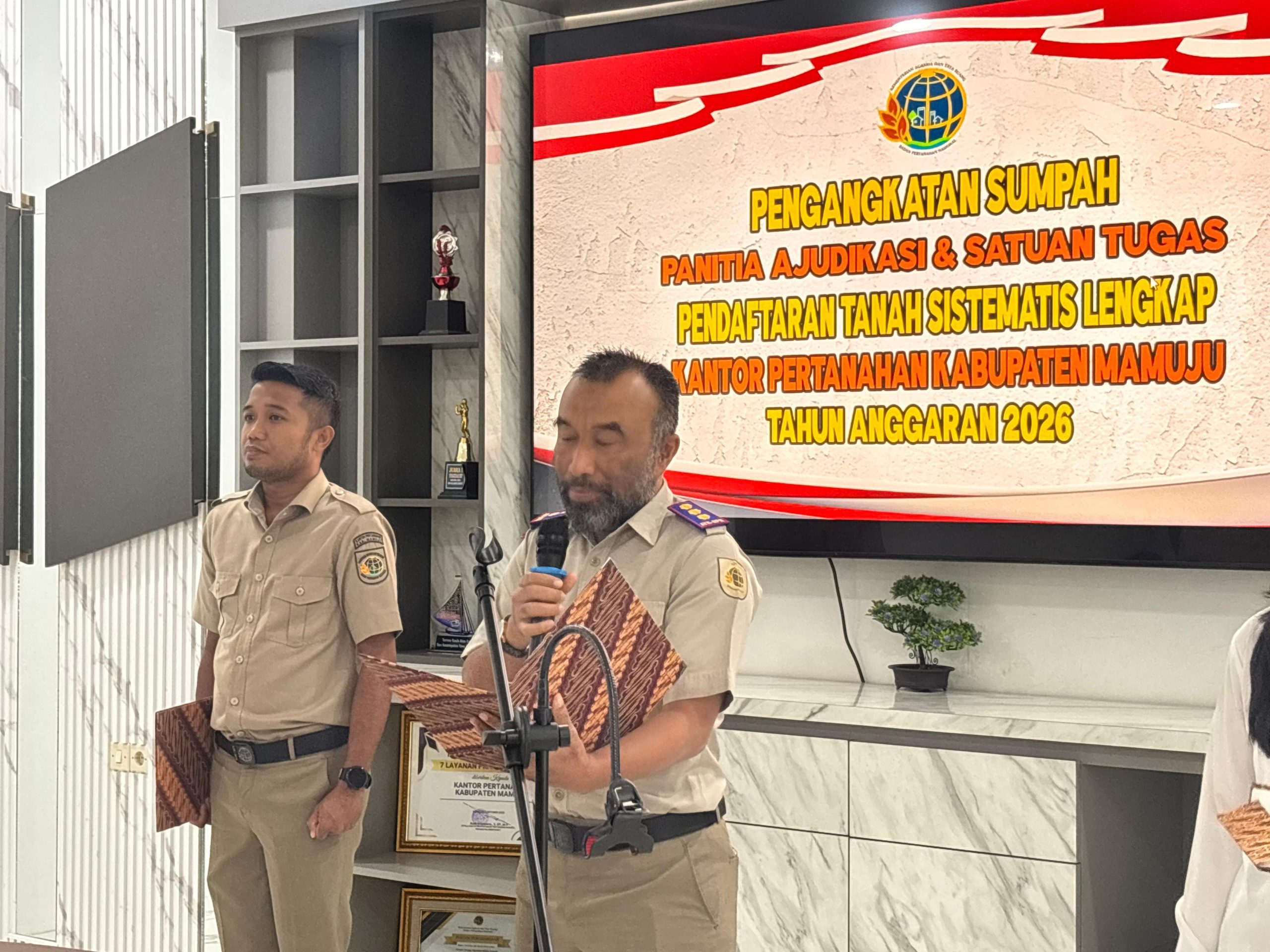 Mamuju. ambarnews.com–Kantor Pertanahan Kabupaten Mamuju melaksanakan Pengambilan Sumpah Panitia Ajudikasi, Satuan Tugas Fisik, Satuan Tugas Yuridis, dan Satuan Tugas Administrasi dalam rangka Pendaftaran Tanah Sistematis Lengkap (PTSL) Tahun 2026.
