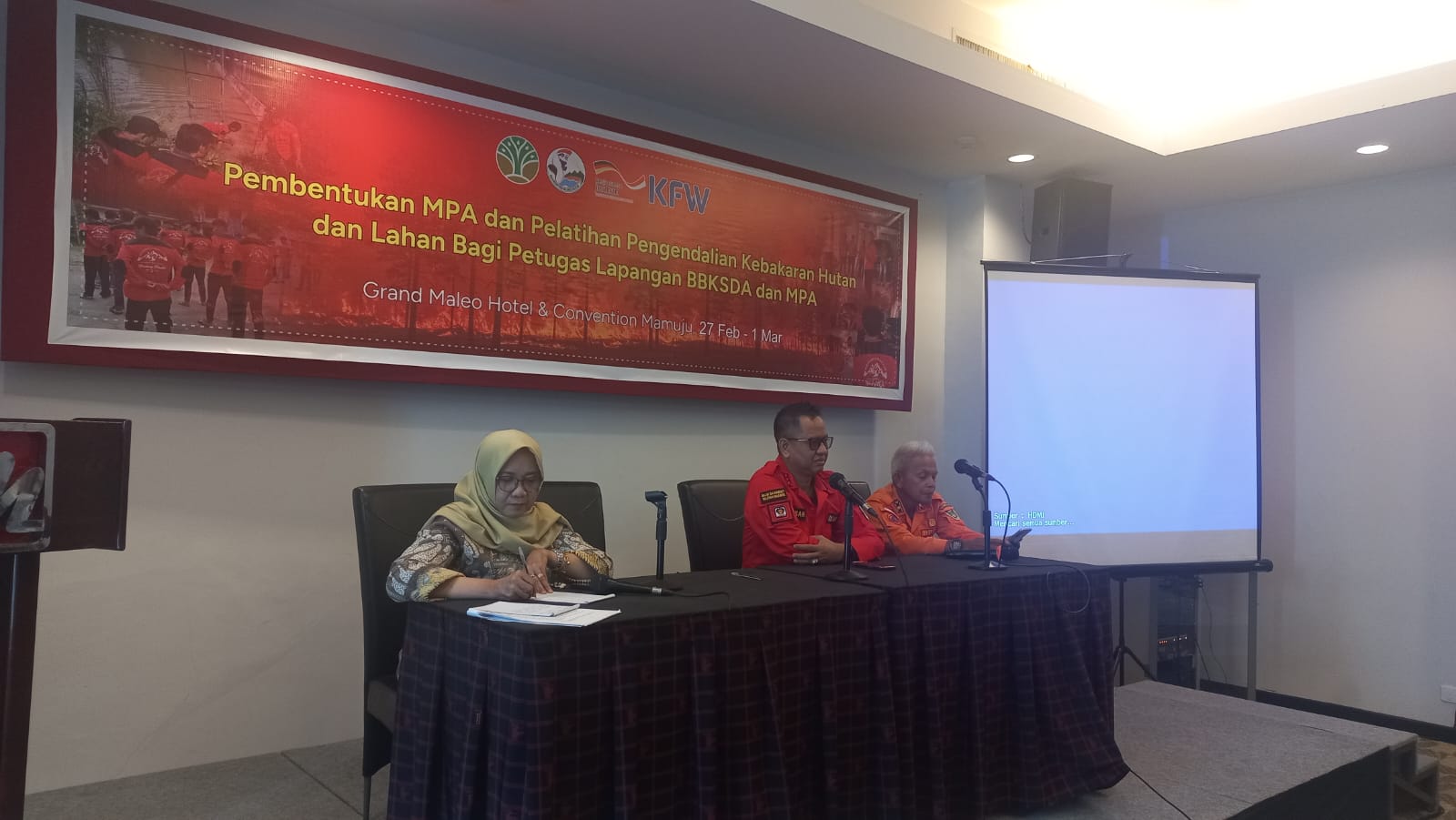 Mamuju ambarnews.com— Plt Sekretaris Dinas Lingkungan Hidup dan Kehutanan (DLHK) Provinsi Sulawesi Barat (Sulbar), Suharnani K, membuka secara resmi kegiatan Pembentukan Masyarakat Peduli Api (MPA) dan Pelatihan Pengendalian Kebakaran Hutan dan Lahan (Karhutla) bagi petugas lapangan dan personel BBKSDA, yang dilaksanakan di Grand Maleo Hotel and Convention Mamuju oleh Balai Besar KSDA Sulawesi Selatan.