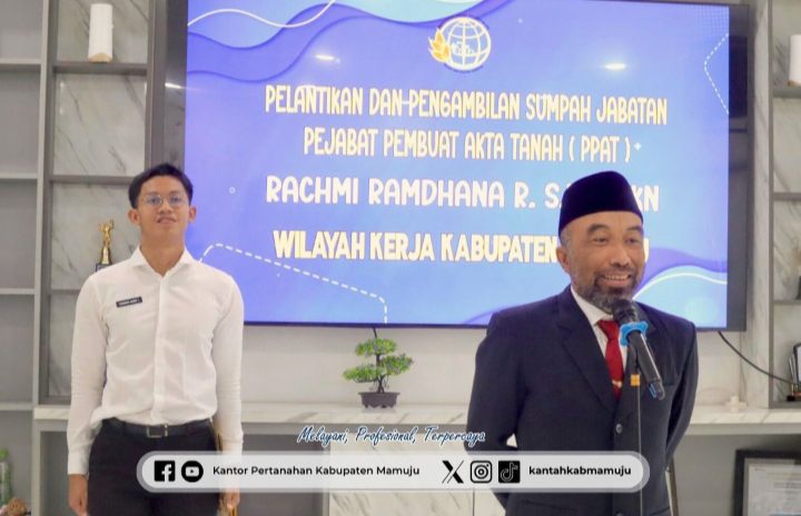 Mamuju ambarnews.com– Rabu 3/9-2025 Kantor Pertanahan Kabupaten Mamuju resmi melaksanakan pengangkatan dan pengambilan sumpah PPAT baru, Ibu Rachmi Ramdhana R., S.H., M.Kn., untuk wilayah kerja Kabupaten Mamuju