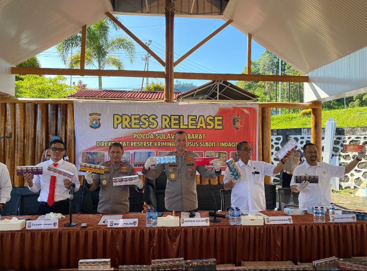 Dalam konferensi pers, Bau Akram Dai menyampaikan apresiasi pada Polda sulbar atas sinerginya dalam membantu pemerintah sebagai layanan perlindungan konsumen dan menjamin legalitas produk.
