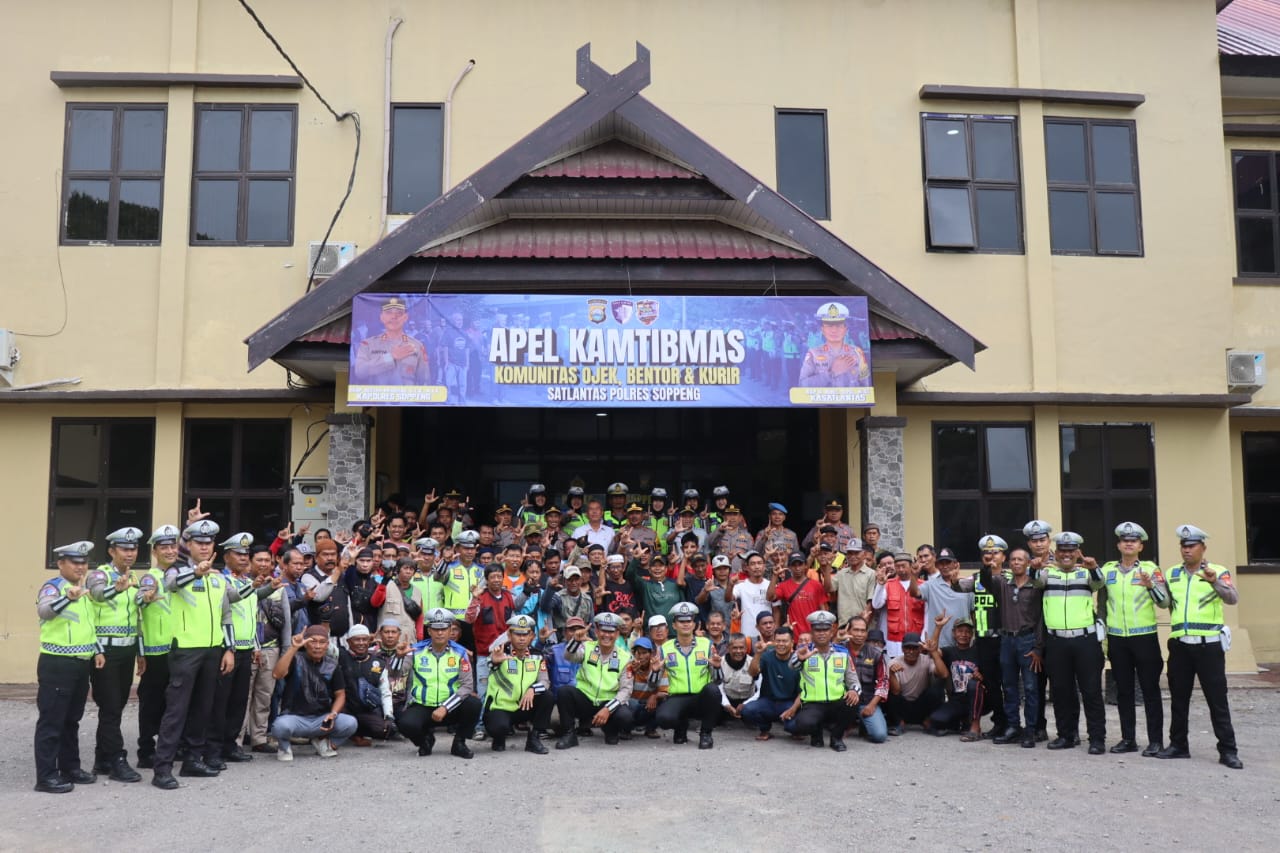 SOPPENG-AMBARNEWS.COM || Polres Soppeng menggelar Apel Kamtibmas bersama komunitas ojek, bentor, dan kurir sebagai upaya memperkuat sinergi antara Polri dan masyarakat dalam menjaga keamanan, ketertiban, serta kelancaran lalu lintas di wilayah Kabupaten Soppeng. Kegiatan berlangsung pada Rabu, 11 Februari 2025, pukul 08.12 WITA di Halaman Mako Polres Soppeng.