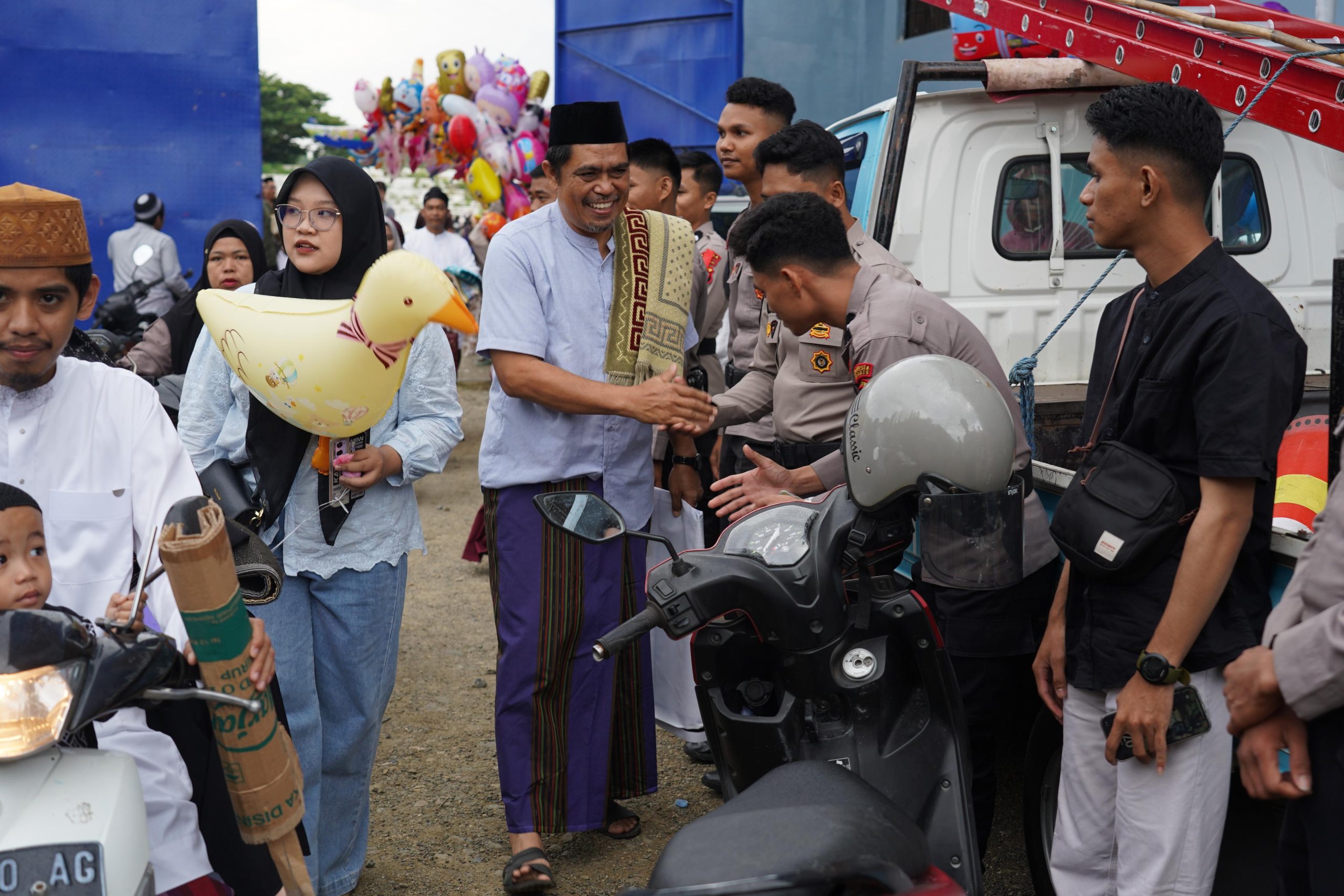 Momen hari kemenangan ini semakin hangat dengan sikap saling menghargai antara masyarakat dan aparatur keamanan.