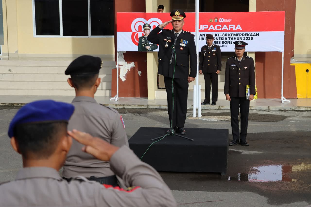 Upacara diikuti oleh para pejabat utama Polres Bone, perwira, bintara, tamtama, serta Aparatur Sipil Negara (ASN) Polri. Seluruh rangkaian kegiatan berlangsung dengan tertib, penuh rasa nasionalisme, dan semangat untuk terus mengisi kemerdekaan dengan pengabdian terbaik kepada bangsa dan negara.