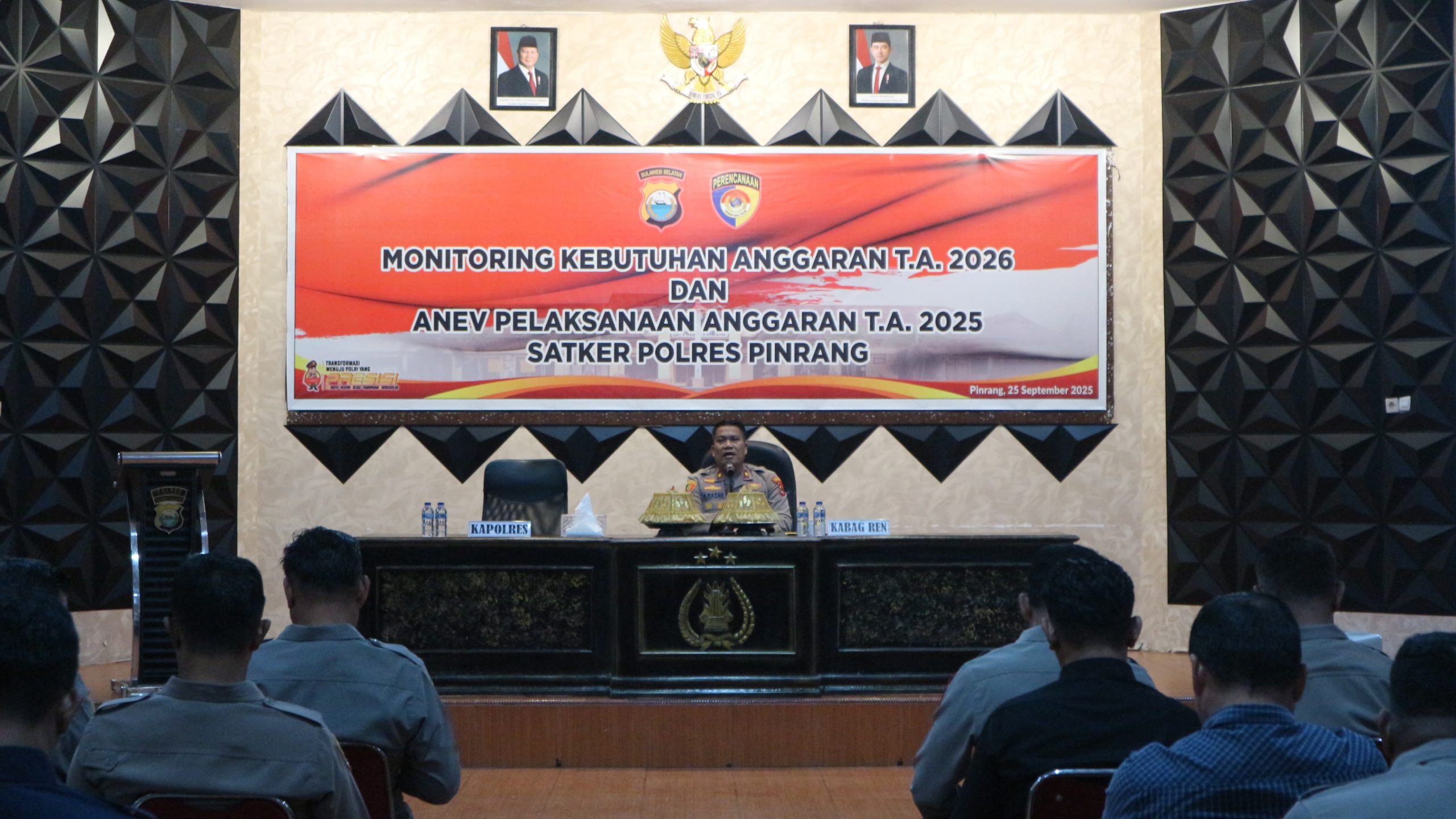PINRANG-AMBARNEWS.COM || Polres Pinrang menggelar kegiatan Monitoring dan Evaluasi (Monev) Anggaran Tahun Anggaran 2025 serta pembahasan usulan anggaran Tahun Anggaran 2026, yang dirangkaikan dengan penyusunan Naskah Renstra dan Renja. Kegiatan ini berlangsung di Aula Lawagawa Polres Pinrang pada Kamis (25/09/2025) pagi.