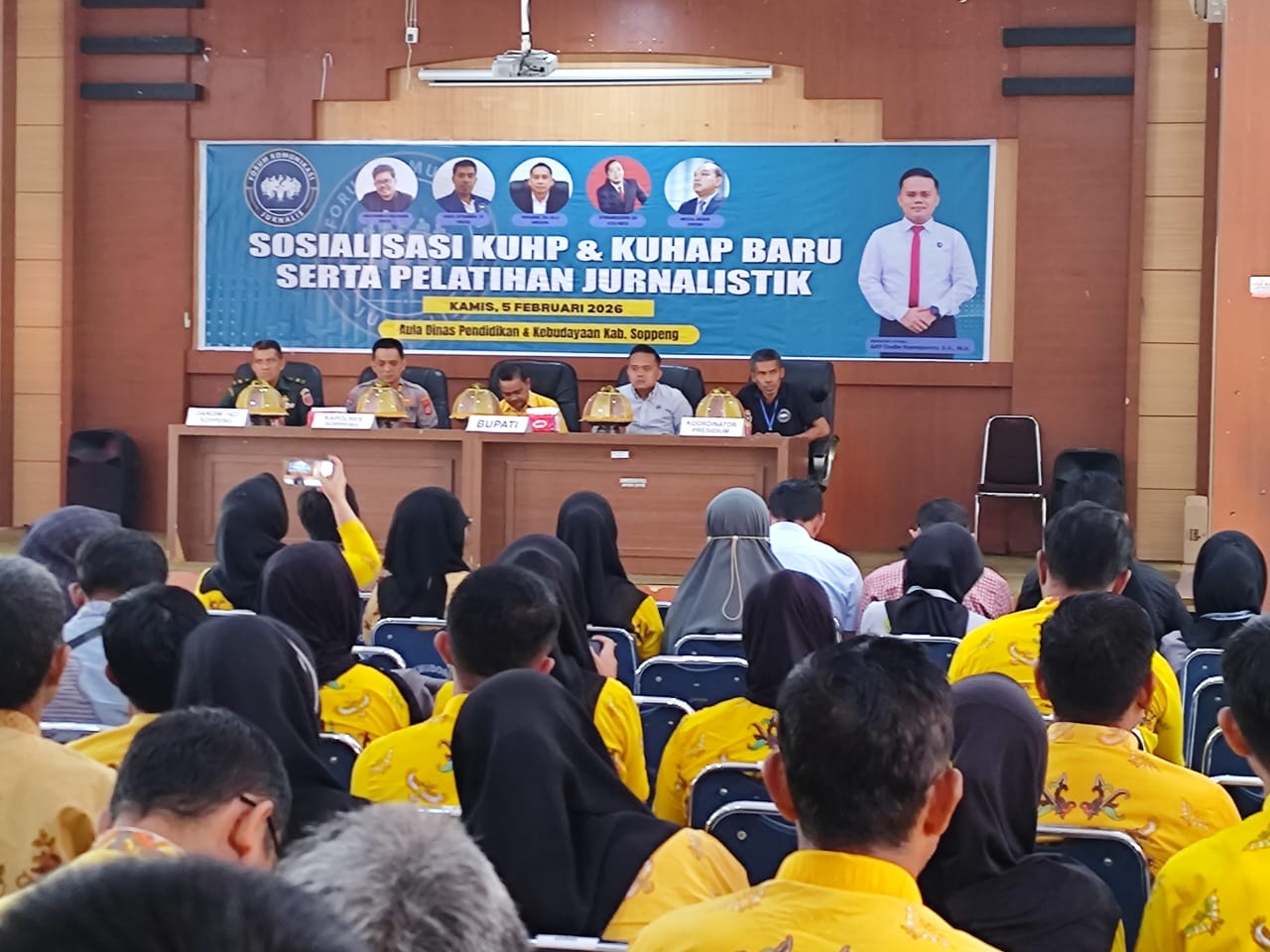 Salah satu upaya tersebut diwujudkan melalui Pelatihan Jurnalistik dan Sosialisasi KUHP–KUHAP Baru yang digelar Forum Komunikasi Jurnalis (FKJ) Kabupaten Soppeng bekerja sama dengan Polres Soppeng, pada hari Kamis, 5 Februari 2026, sekitar pukul 09.00 WITA di Aula Dinas Pendidikan dan Kebudayaan Kabupaten Soppeng.