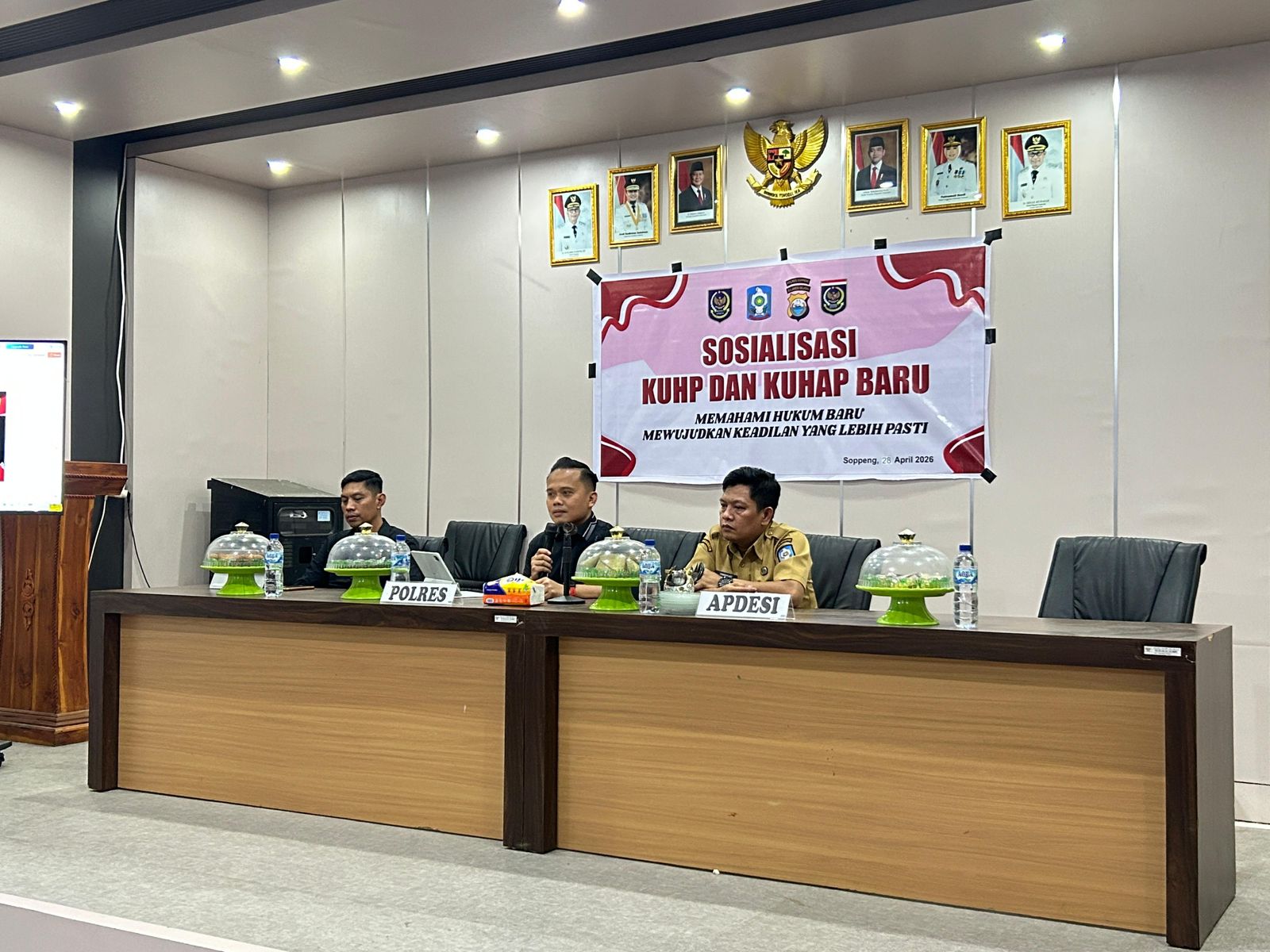 Mengusung tema “Memahami Hukum Baru, Mewujudkan Keadilan yang Lebih Pasti”, sosialisasi dipimpin langsung oleh Kasat Reskrim Polres Soppeng, AKP Dodie Ramaputra, S.H., M.H., didampingi Kanit Tipidkor IPDA Alfian Saputra, S.H. Kegiatan ini dihadiri para kepala desa se-Kecamatan Liliriaja dan Kecamatan Citta, perwakilan BPD, perangkat desa, serta tokoh masyarakat, adat, dan agama.